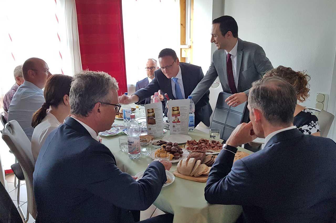 Ebenfalls dabei waren ISB Vorstandssprecher Ulrich Dexheimer und die Abteilungsleiterin für Investitionszuschüsse Sibylle Schwalie. Als Förderbank des Landes setzt die Investitions- und Strukturbank Rheinland-Pfalz (ISB) die Förderprogramme des Wirtschaftsministeriums um. Unsere (neue) Hausbank, die Kreissparkasse Kaiserslautern, die uns bei diesem riesigen Projekt begleitet, war gleich mit zwei Vertretern vor Ort und auch von der Gemeinde Sembach gab es Unterstützung an diesem bedeutsamen Termin. Ebenfalls nicht fehlen durfte unser Steuerberater, der schon von Beginn an unsere Finanzen rockt.