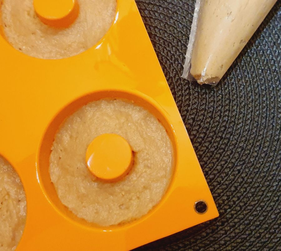 Den Teig in einen Spritzsack füllen, entweder mit Rundtülle oder ohne, ich hab keine Tülle verwendet.