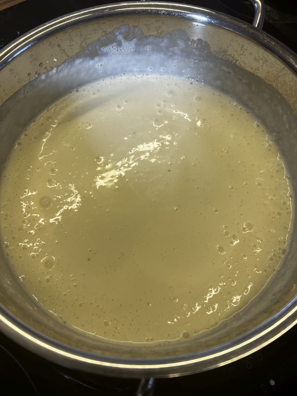 Die Masse unter gelegentlichem Rühren etwas abkühlen lassen.