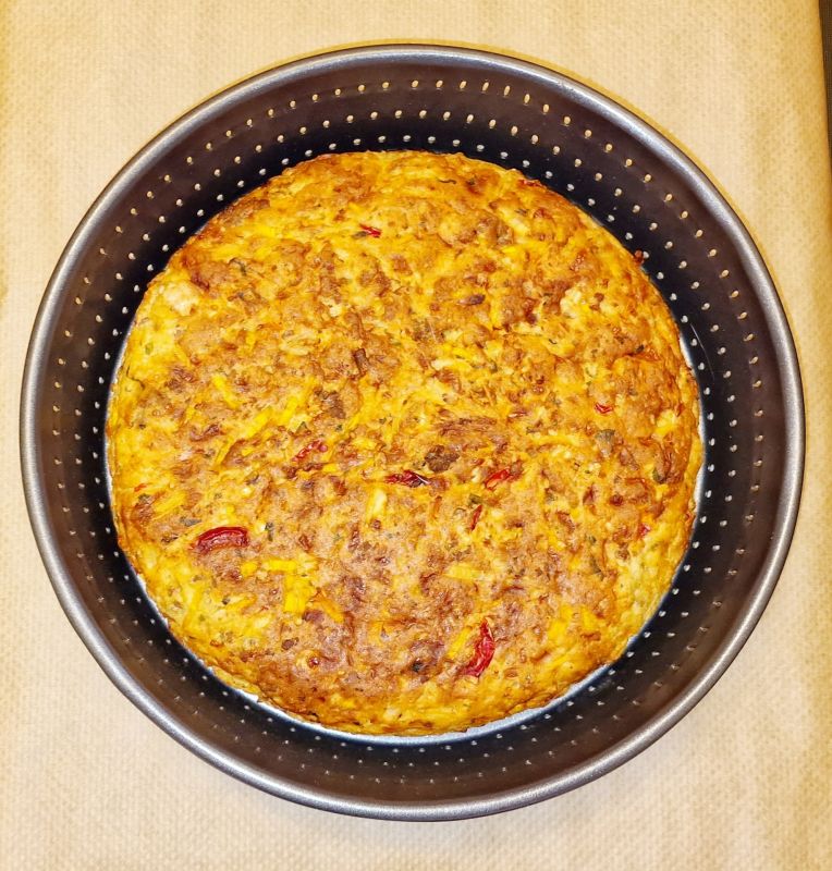 Den zerkleinerten Blumenkohl und etwas von den kleinen Röschen (Rest ist zum Belegen); die Hackfleischmischung und die Karotten Paprikamischung miteinander vermischen. Pizzateigmischung, geriebenen Käse (davon etwas zum bestreuen zur Seite legen) und Gewürze hinzufügen, mit dem lauwarmen Wasser aufgießen und gut durchrühren. Abschmecken ob gewürzt so passt, ansonsten nachwürzen. Soll ein weicherer Teig sein - wenn er zu fest ist, noch etwas Wasser hinzufügen. Die Masse 15 Minuten rasten lassen.