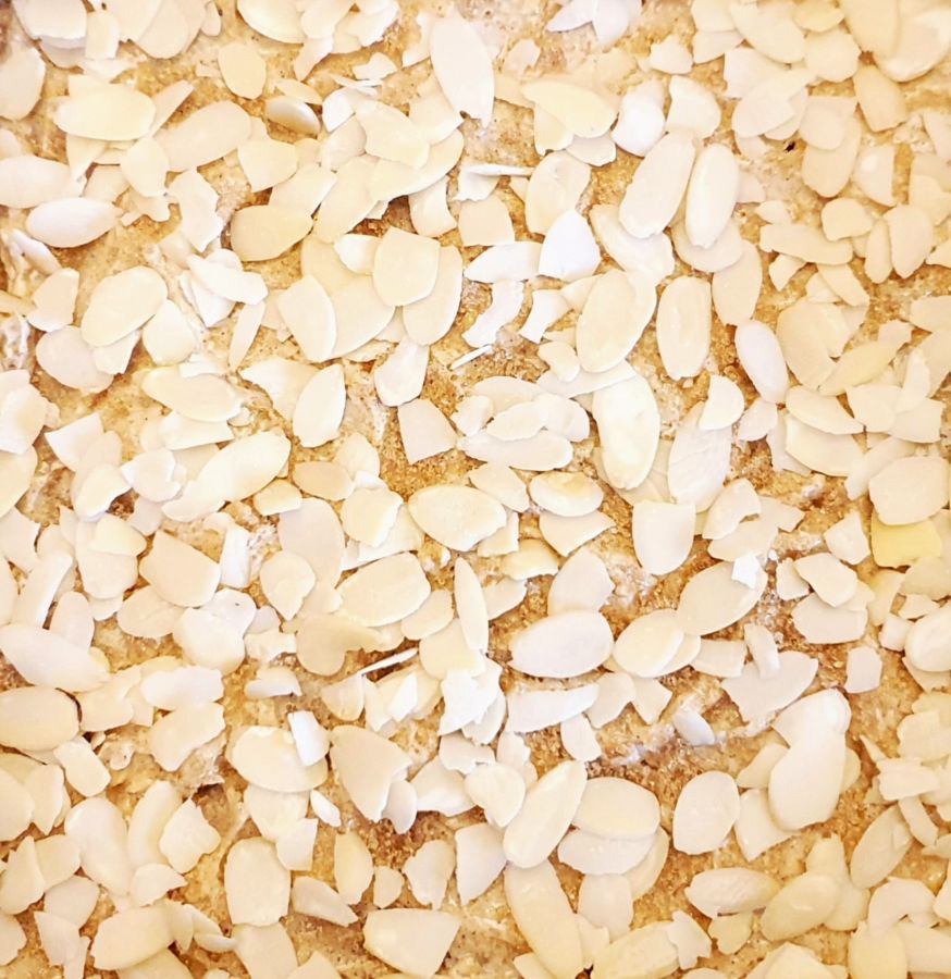 Dann mit Karamelltraum bestreuen und mit den gehobelten Mandeln.