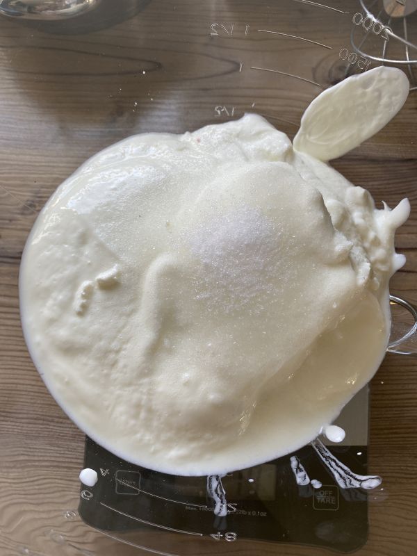 Dies komplett unter ständigen Rühren unter den Rest der Creme geben.