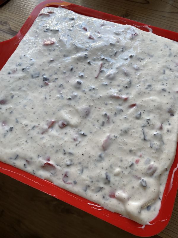 Auf Alufolie oder ähnliches gießen, damit eine paar Millimeter dicke Platte entsteht.