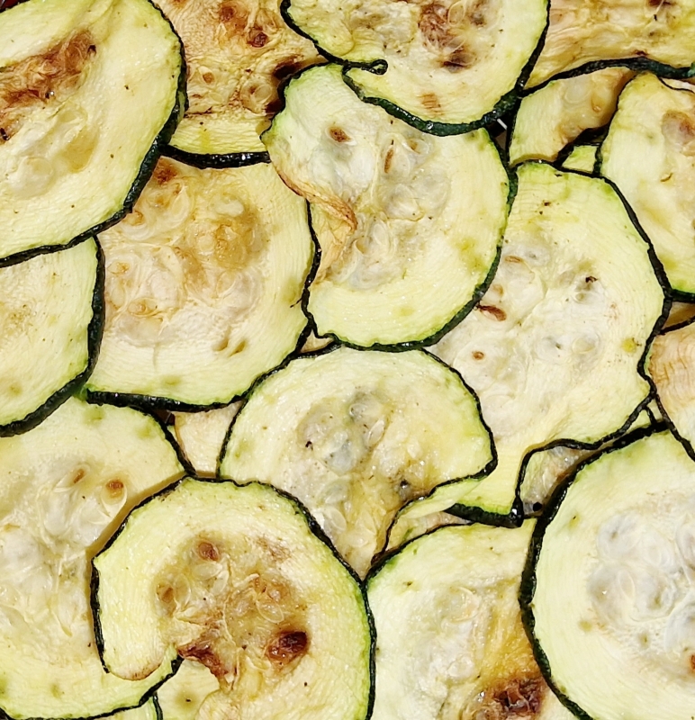 Ein Blech mit Backpapier auslegen und die Scheiben auflegen. Mit etwas Salz und Gemüseliebling bestreuen und bei 150 Grad Grillstufe 15 Minuten grillen, dann umgedreht auf einem Gitter nochmal 10 Minuten. Da aber bitte auf eigenen Backofen achten. Oder in der Pfanne oder Kontaktgrill grillen.