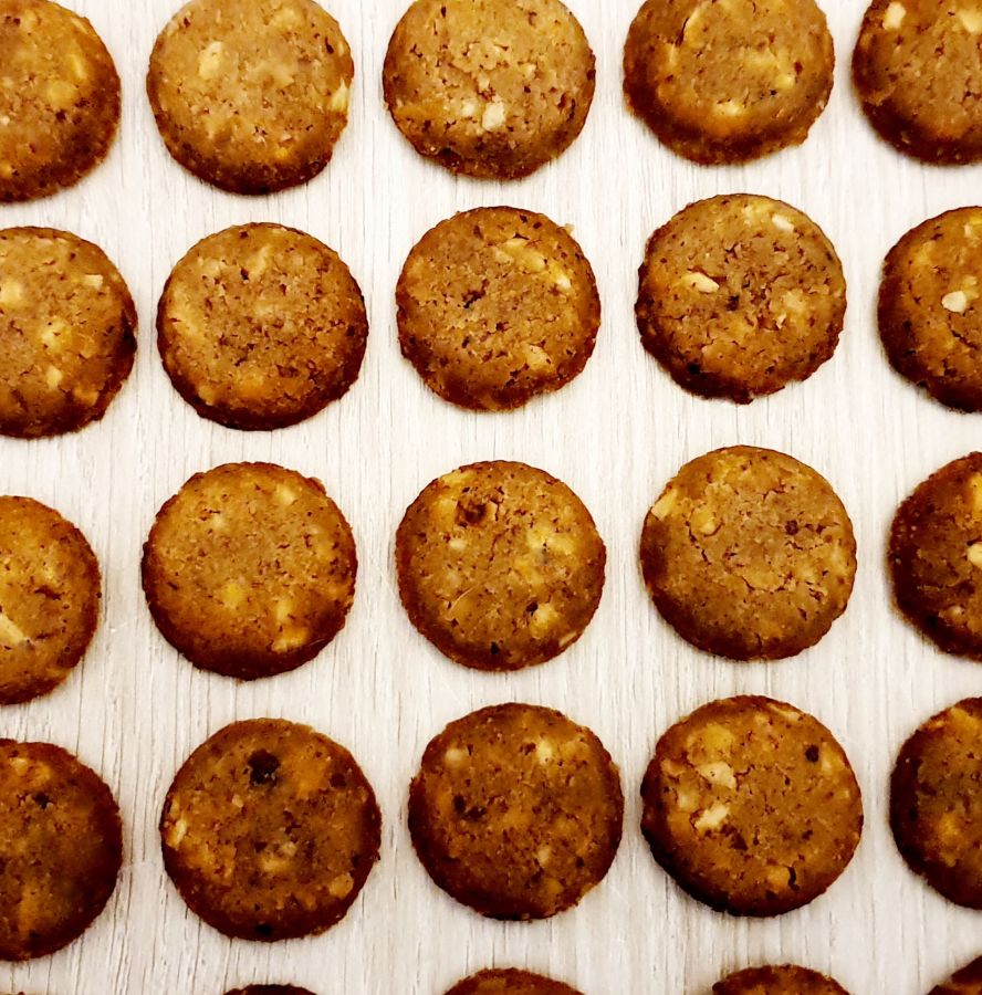 Bei 170 Grad Umluft für 6 - 7 Minuten backen. Gleich aus der Form stürzen und mit der Seite nach oben auf ein Blech legen. So lange wiederholen bis der Teig verbraucht ist. Ich empfehle den Kauf von 2 Formen, dann gehts schneller. Danach bei 160 Grad für weitere 6 - 7 Minuten fertig backen. Und bei 70 Grad für mind. 1,5 h trocknen. Empfehle unbedingt die Kekse zu trocknen.