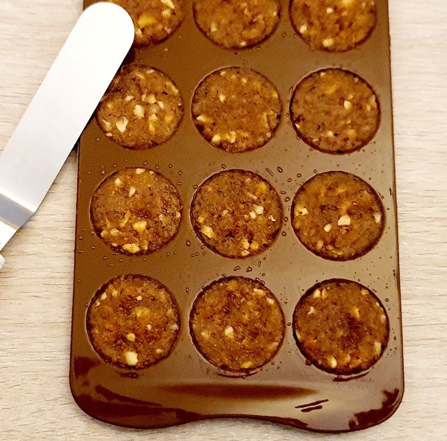 Für den Teig Haselnussfix, geröstet & gehackte Haselnüsse, Kuchenzauber, Low Carb Süße Puder, Vanillitraum, Ei, Nuketo und Pure Flavours zu einem Teig vermengen.