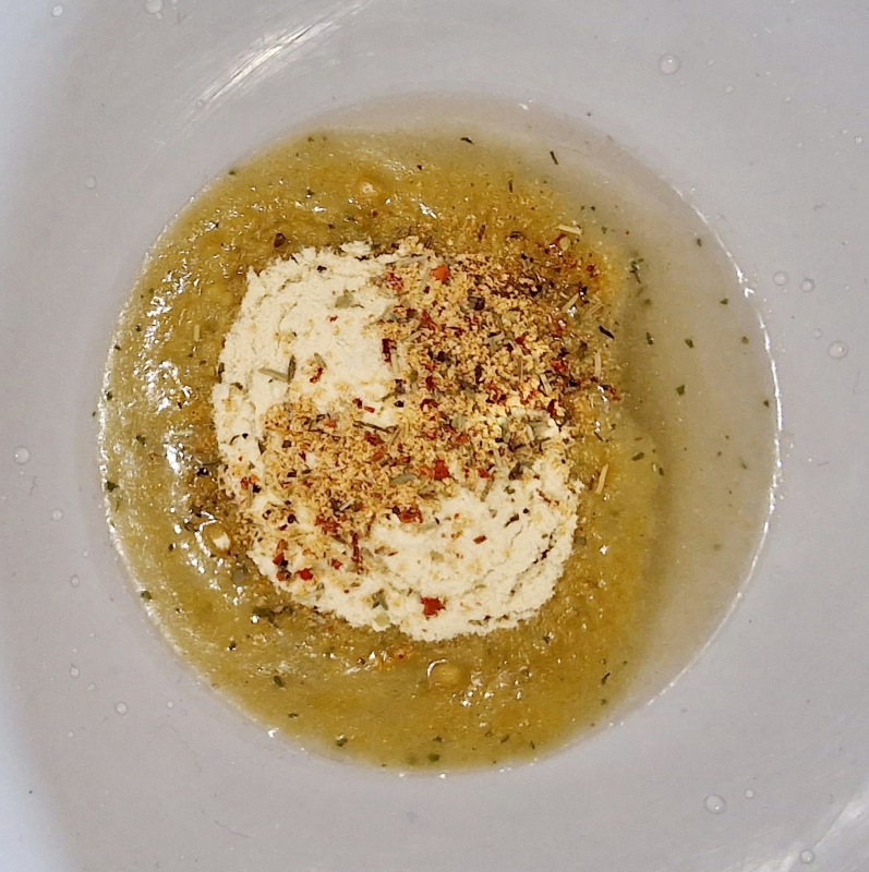 In einer Schüssel Wasser mit Suppentraum, Gemüseliebling, Bruschetta & Tomate verrühren, wird pastös.