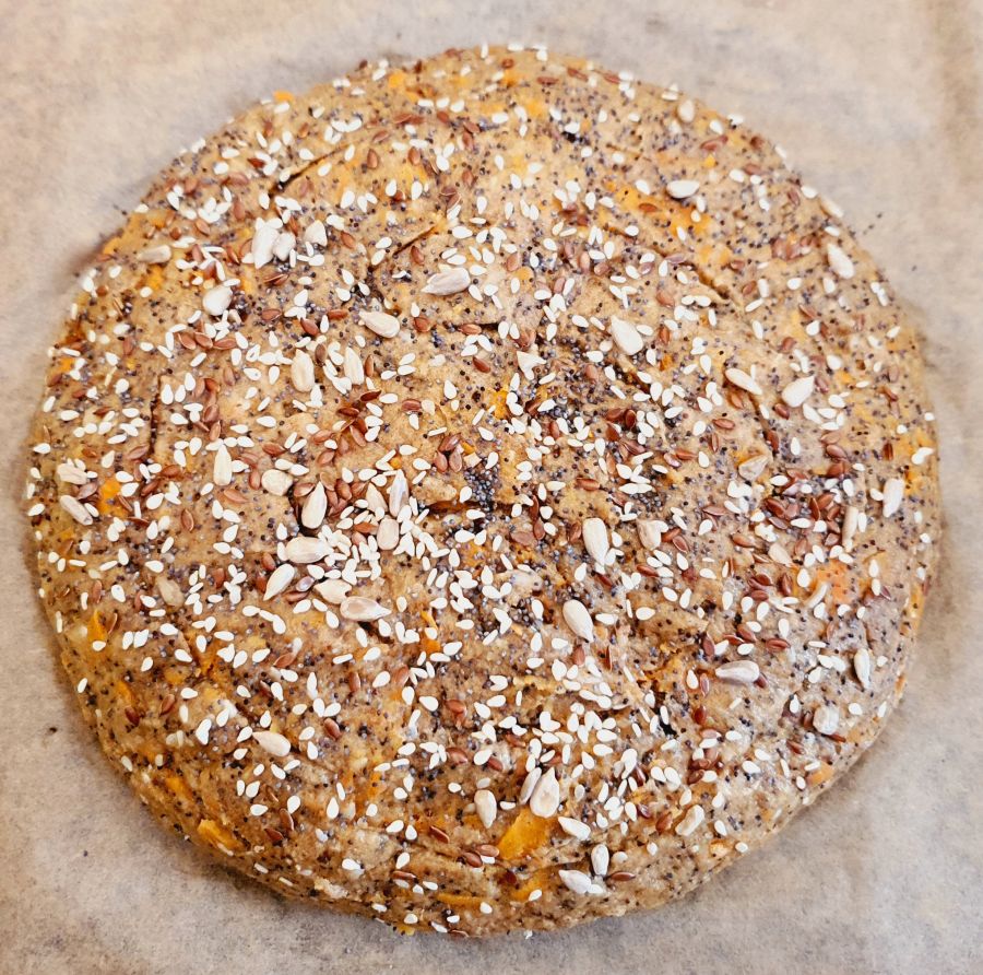 Ein Laibchen formen und mit Saaten oder Bambusfaser bestreuen.