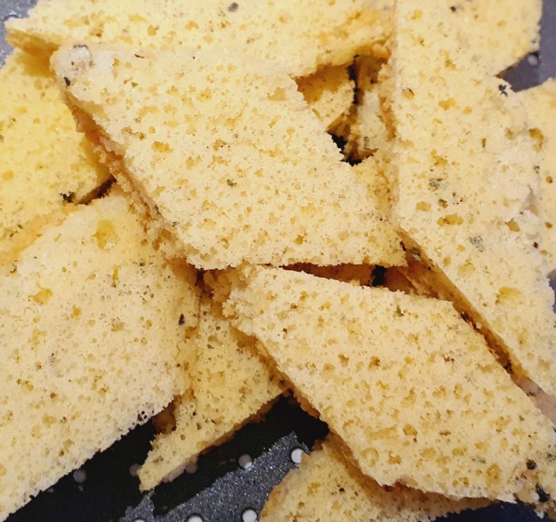 Das Blech reicht für 8 Portionen. Was übrig bleibt, kann zwischen Backpapierlagen in einem Becher eingefroren werden. Taut schnell auf, kann auch gefroren in die heiße Suppe gelegt werden.