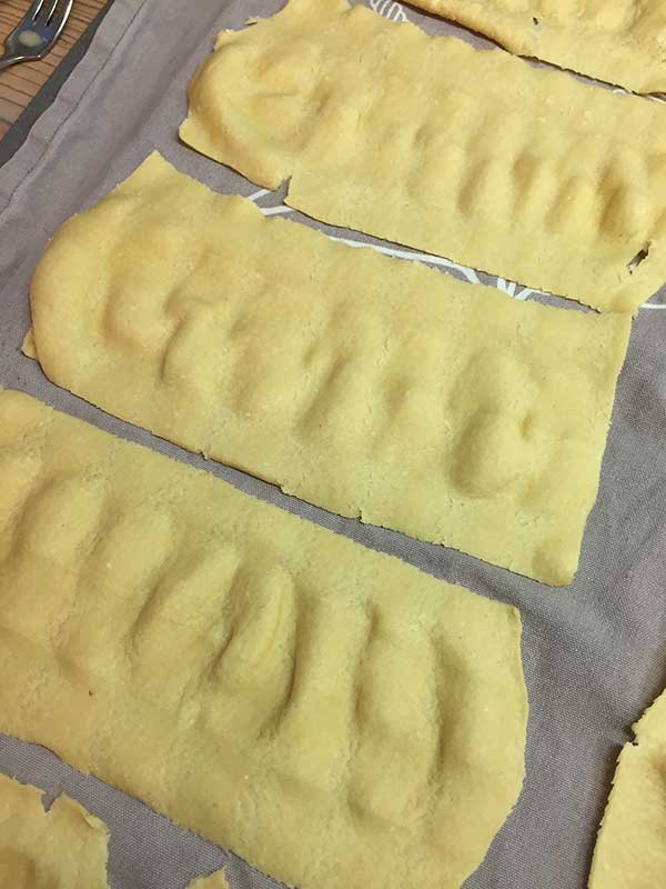 Lasagneplatten entweder per Hand oder mit dem Pastamaker herstellen. Die Platten werden frisch weiterverarbeitet!
