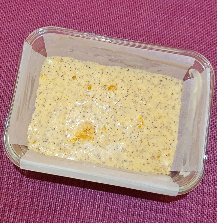 Glasbowl mit Backpapier auslegen (muss aber nicht sein, geht auch ohne), Teig einfüllen.