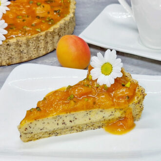 Marillentopping auf die Tarte geben und nach Belieben mit Pistazien bestreuen.