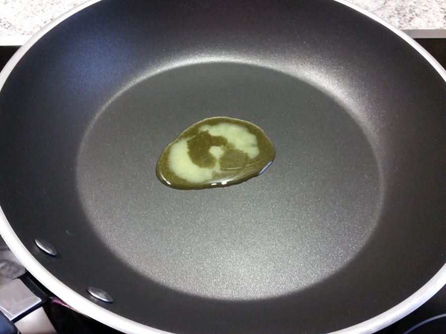 Etwas Kokosöl oder Butterschmalz (keine Butter!) in einer Pfanne erhitzen. Es ist wichtig, dass du eine Pfanne mit guter Antihaftbeschichtung verwendest, da eiweissreiche Teige sehr gerne ankleben. Der Herd sollte auf mittlere Hitze eingestellt sein.