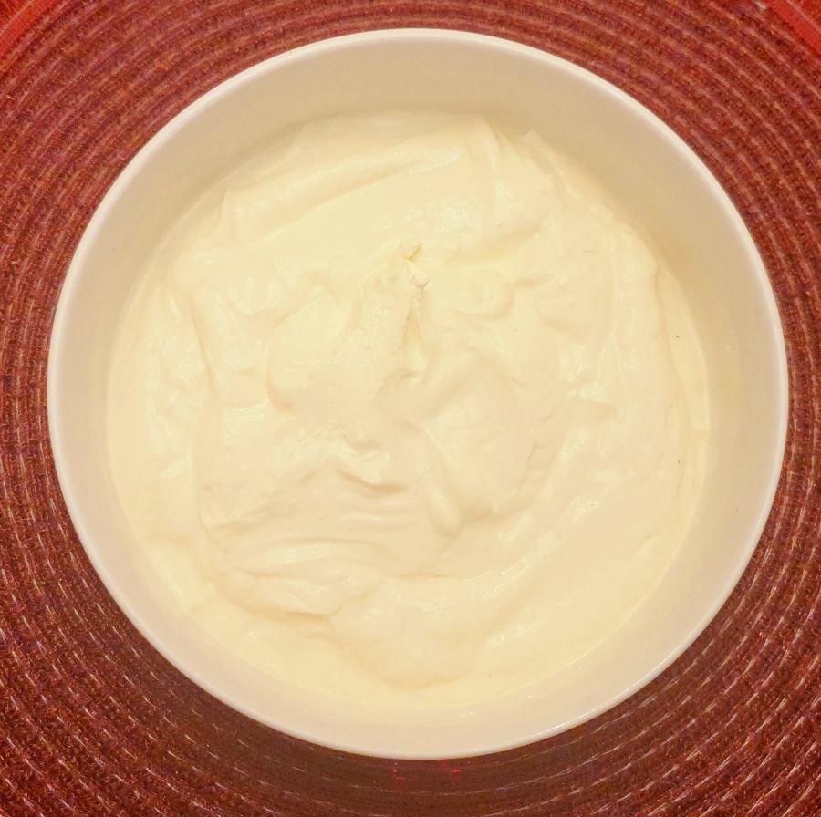 Für die Creme Schlagsahne etwas anschlagen und mit Frischkäse, Vanilletraum, Süße, Aroma und Rahmquarkpulver aufschlagen. Für 30 Minuten im Kühlschrank ruhen lassen.