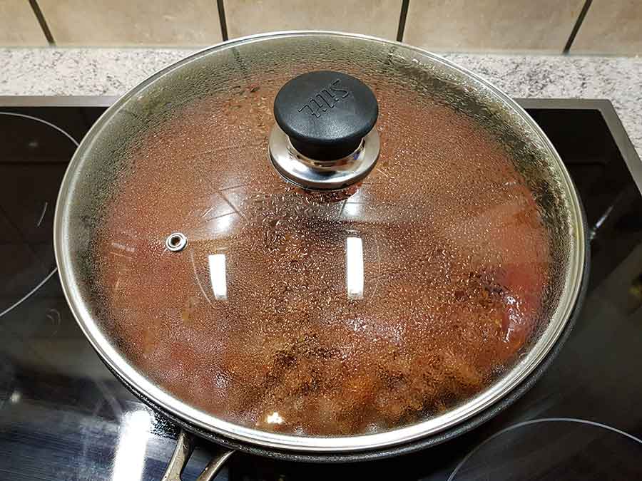 Die passierten Tomaten zugeben, mit Pizza Pizza! würzen und mit geschlossenem Deckel ca. 20 min bei schwacher Hitze köcheln lassen. In der Zwischenzeit die Spaghetti zubereiten.