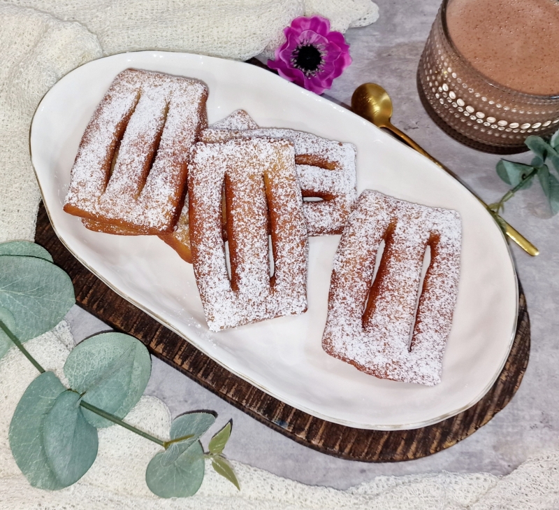 Nur so viele Strauben aus dem Backofen nehmen wie gerade frittiert werden, die restlichen im warmen Backofen lassen.