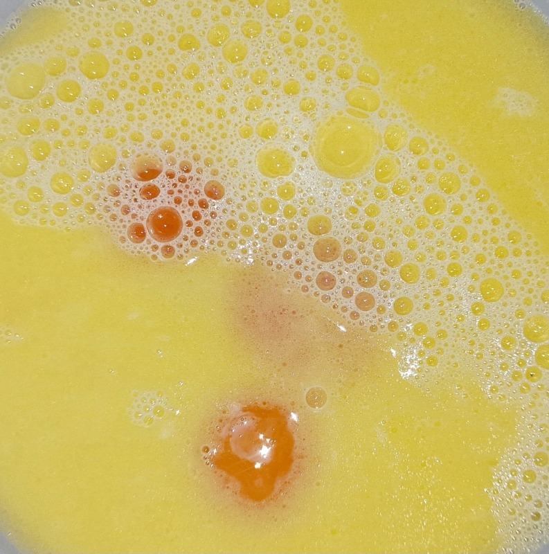 Eier und Eigelb, Salz und das Hefewasser hinzufügen und nochmal gut verquirlen.