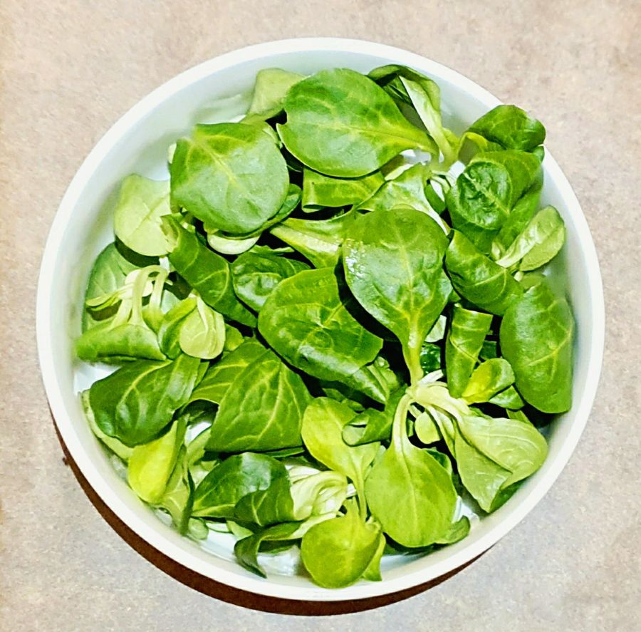 Dann den Vogerlsalat, wieder etwas Kernölcreme.