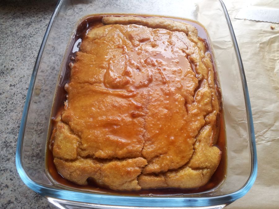 Die Auflaufform mit Backpapier auslegen und den Teig einfüllen.