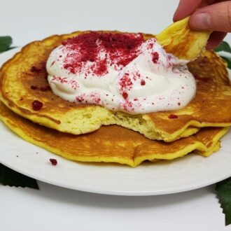 Rezept Zitronen-Buttermilch-Pancakes mit Himbeer-Quark lowcarb glutenfrei