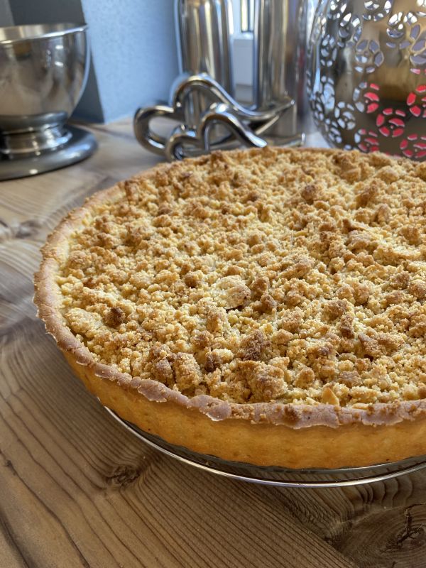 Bei 175 Grad ca. 45 min mit Umluft backen. Wenn die Streusel eine schön hellbraune Farbe haben, mit Alufolie abdecken.