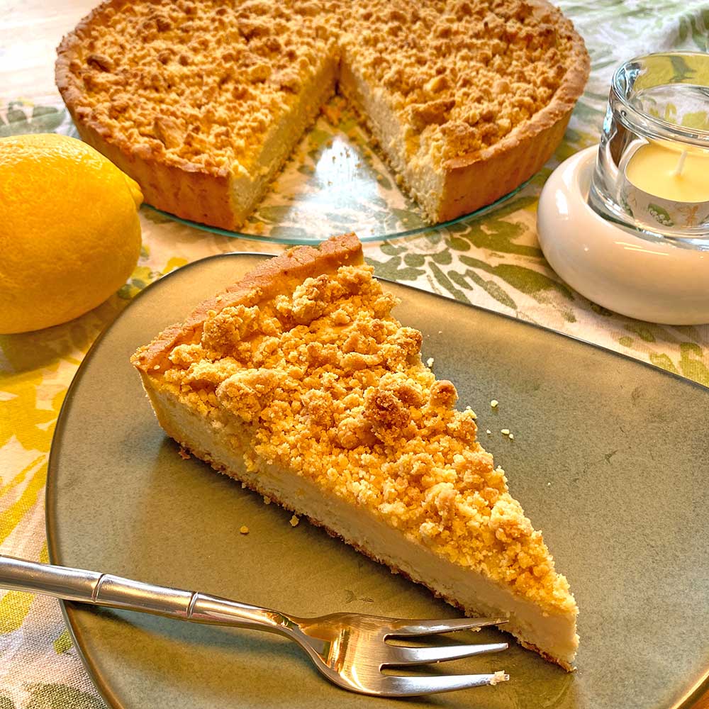 Form aus dem Kühlschrank nehmen und die Zitronencreme auf den Boden geben (noch warm).